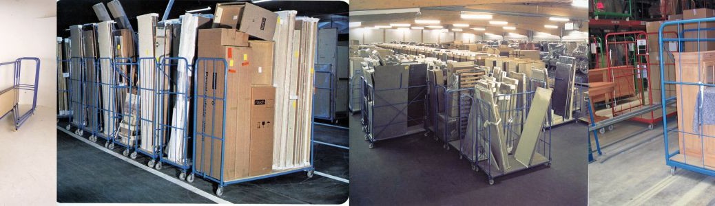 Für die Schlafzimmer-Box ist Platzersparnis das höchste Motto. Möbel mit geringer Tiefe können sicher gelagert und kommissioniert werden. Bei Nichtgebrauch kann auch dieses Transportgerät in wenigen Handgriffen zusammengefaltet werden.